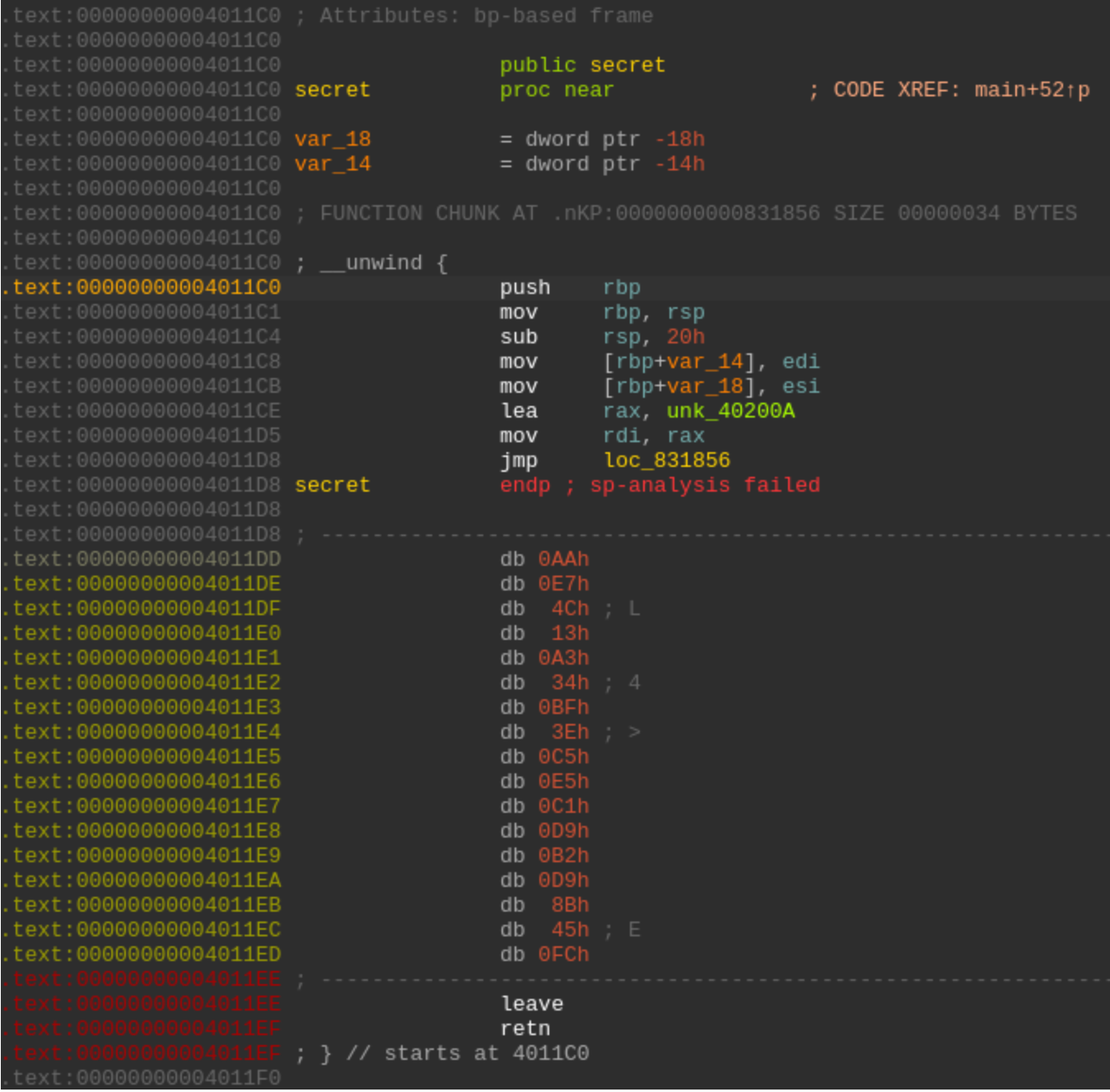 于是,LLVM 大手一挥,把 VMP 精心设计的混淆代码全部删掉,只留下了最核心的那几行逻辑。